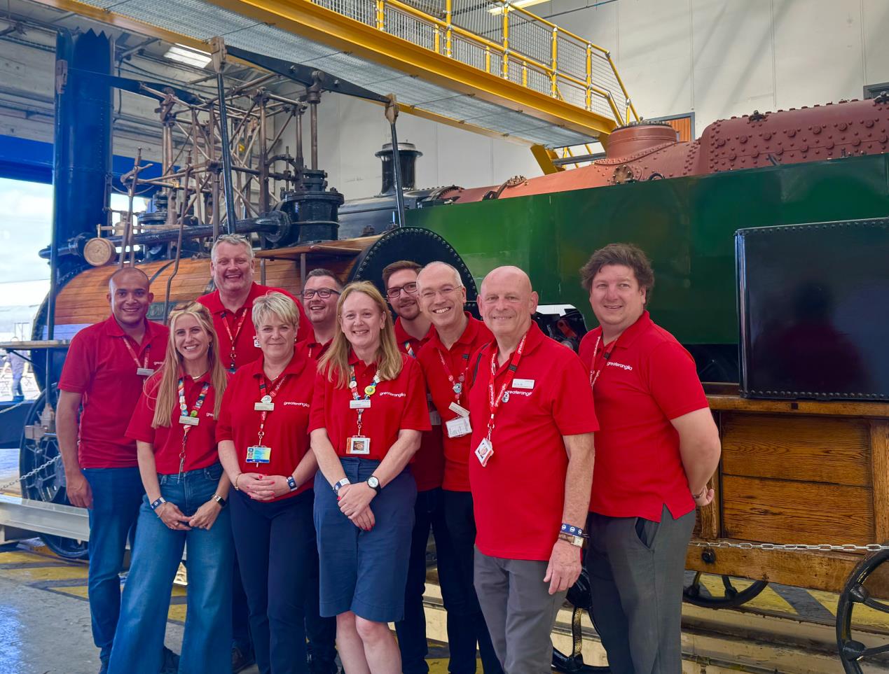 A varied group of 10 colleagues from across the Greater Anglia network made their way from London St. Pancras up the Midland Main Line to the Alstom works in Derby, where one of GA’s Alstom-built class 720 trains, which was built on that very site, was on display. Greater Anglia also presented a Stadler-built class 755 bi-mode train at the event.