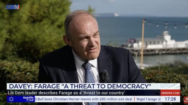LIBERAL Democrat leader Sir Ed Davey has said that Nigel Farage is “a threat to democracy” and does not care about British values.